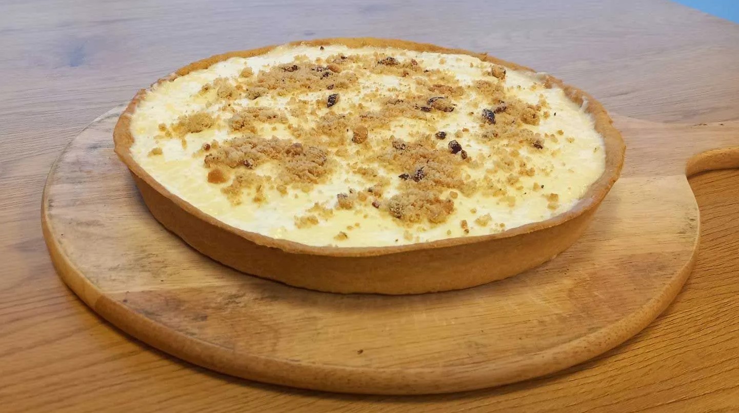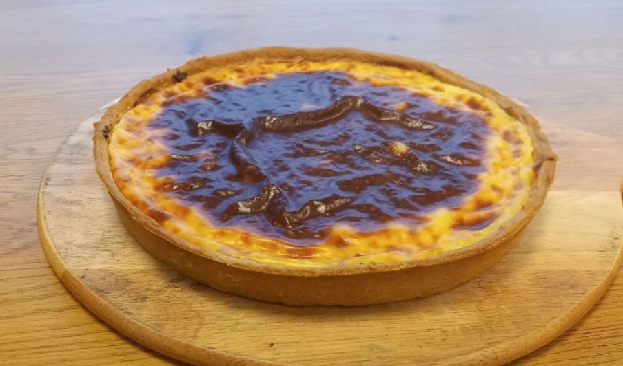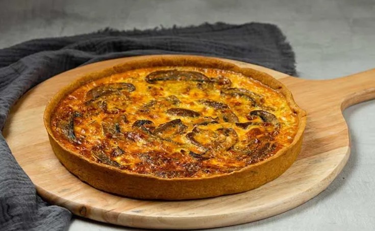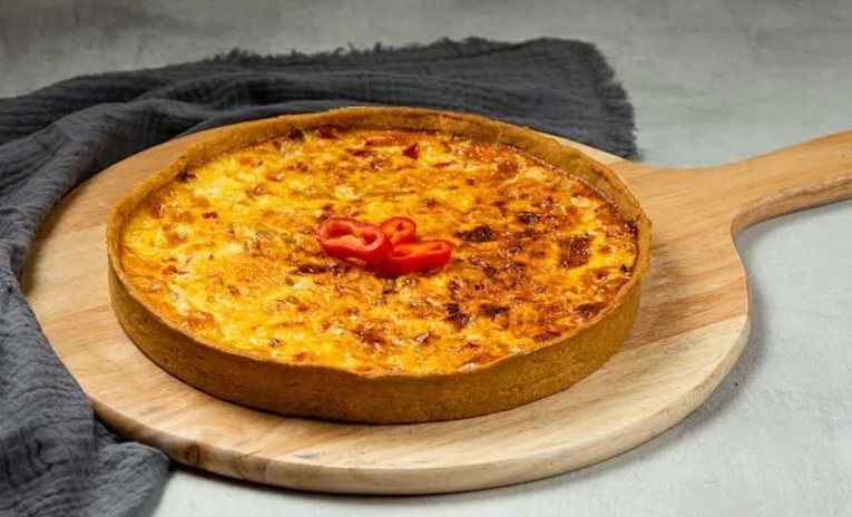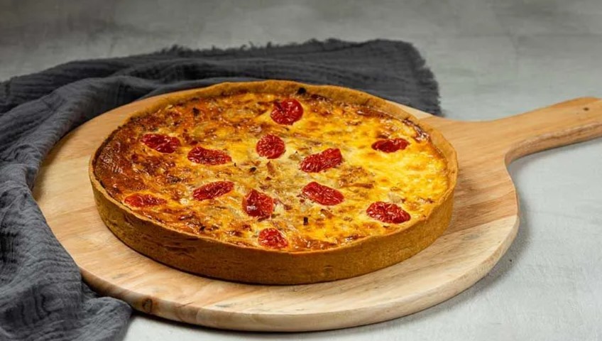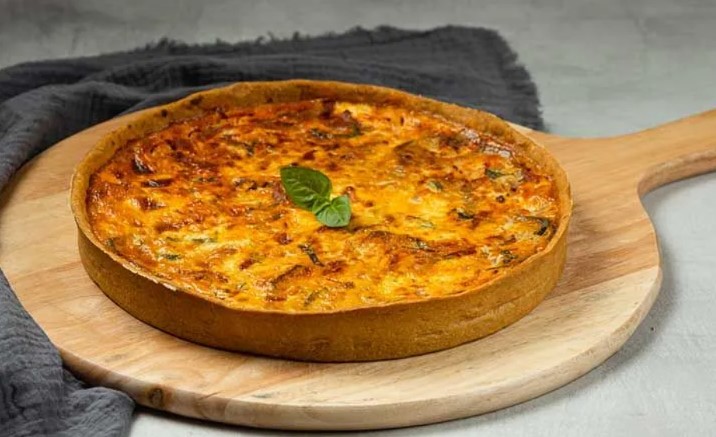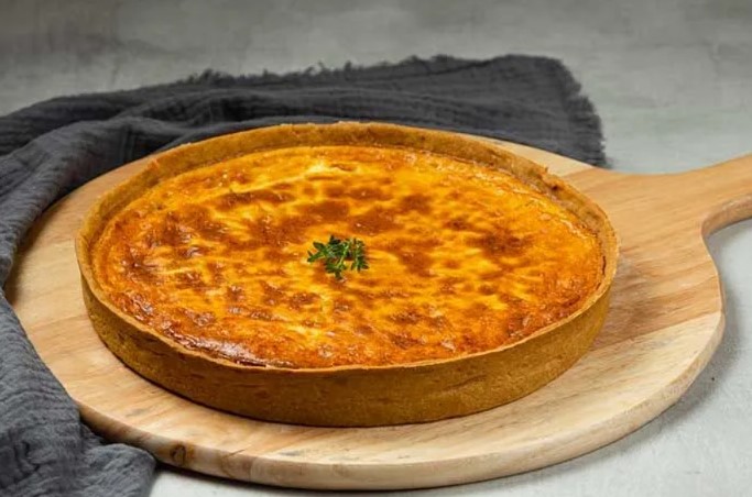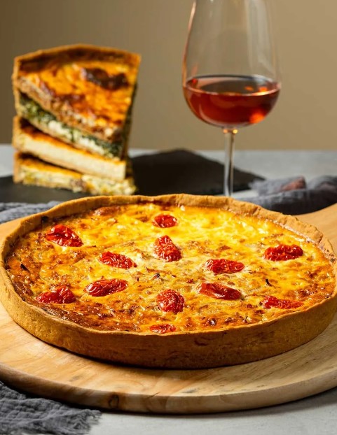 - Τάρτα Quiche Lorraine: Με μπέικον καπνιστό, κρέμα γάλακτος, αυγό, γραβιέρα και regato.